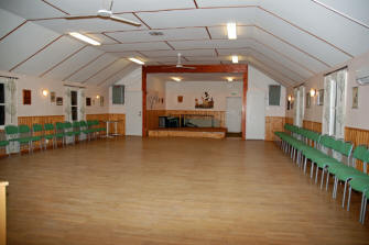 Stor sal med parkettgolv ca 96 m2 + förhöjd scen ca 18 m2.